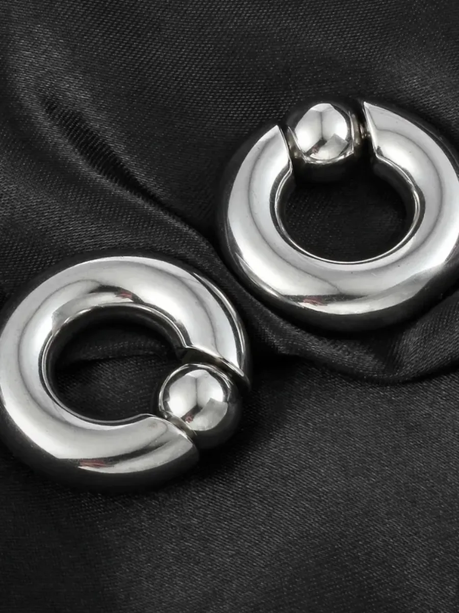 Шарики на пружинах легко вставляются в углубления, при этом кольца не надо расжимать. Кольца можно носить как самостоятельное украшения, а также при их помощи вы можете растянуть тоннели в ушах до нужного вам размера.