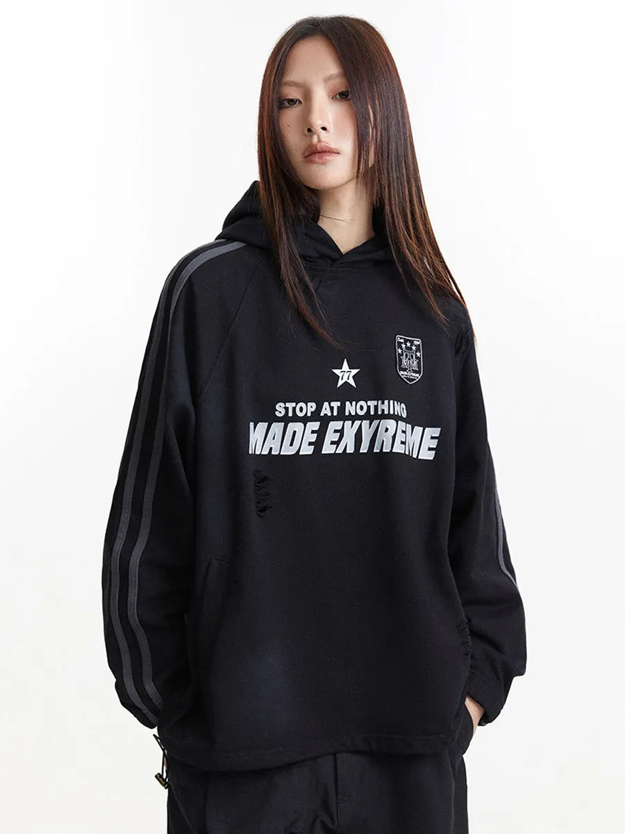 Худи в корейском стиле с капюшоном и принтом является универсальным и стильным вариантом для создания различных образов.