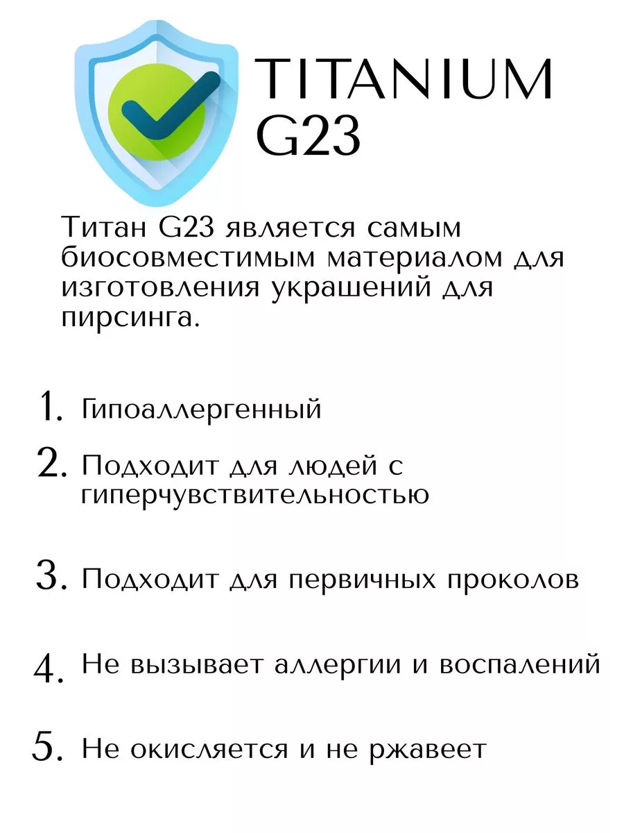 4. Уход: Легко очищается с помощью специальных средств для ухода за пирсингом. Рекомендуется регулярно обрабатывать антисептиком для поддержания гигиены.