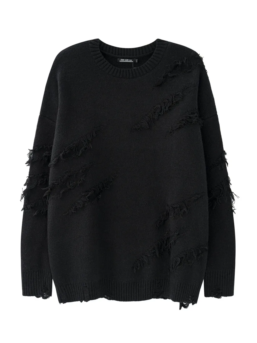 Уникальный дизайн: Рваные элементы придают свитеру современный вид и создают эффектный образ, который не останется незамеченным.
