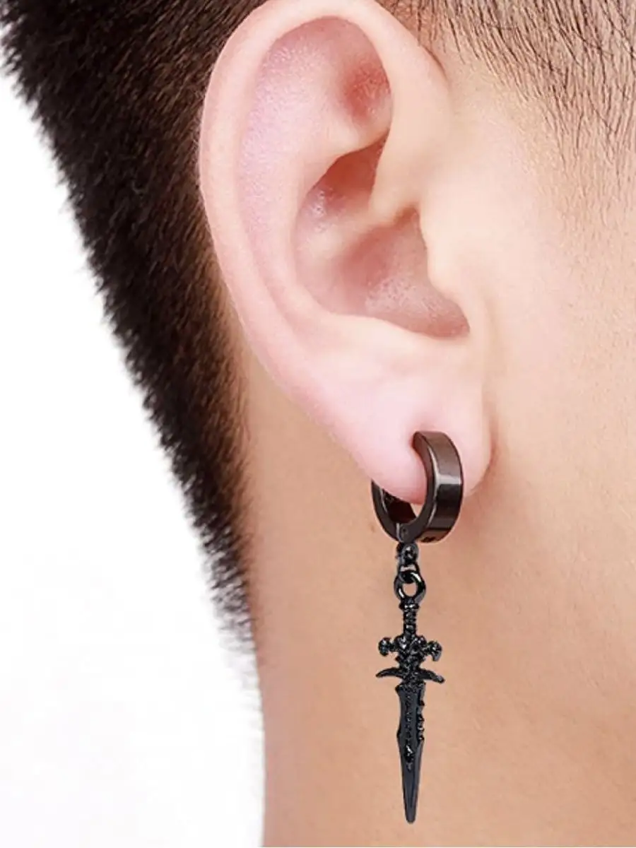 Пирсинг-сережка в ухо . Кольцо с подвеской стальное " Меч Кинжал" . Серьга в форме кольца на замке и подвеской декоративный меч. Оригинальная стальная сережка будет отличным дополнением индивидуального образа, как на праздник так и на каждый день. Высота меча: 31 мм. Диаметр 10мм. Комплектация - 2 серьги. Готические мужские серьги, готические серьги, мужские серьги, моно серьга, стильные серьги, длинные серьги.