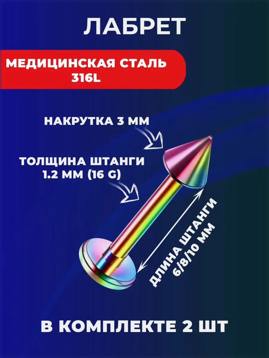 Серьга-лабрет требует прокола и служит для пирсинга "Монро","Медуза","Мадонна","Укус акулы","Укус змеи","Укус георгина", а так же других видов пирсинга.Лабрет для пирсинга, серьга лабрет. Комплектация - 2 серьги.