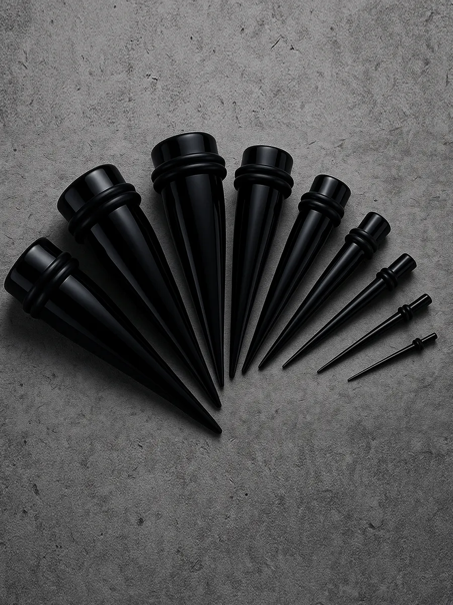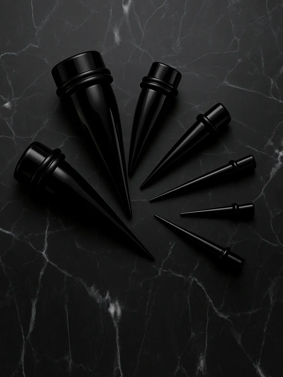 Конусообразная форма растяжек облегчает введение их в мочку уха и позволяет плавно увеличивать размер дырки. Каждая растяжка имеет небольшое увеличение в диаметре, что позволяет постепенно растягивать ушную раковину до желаемого размера.