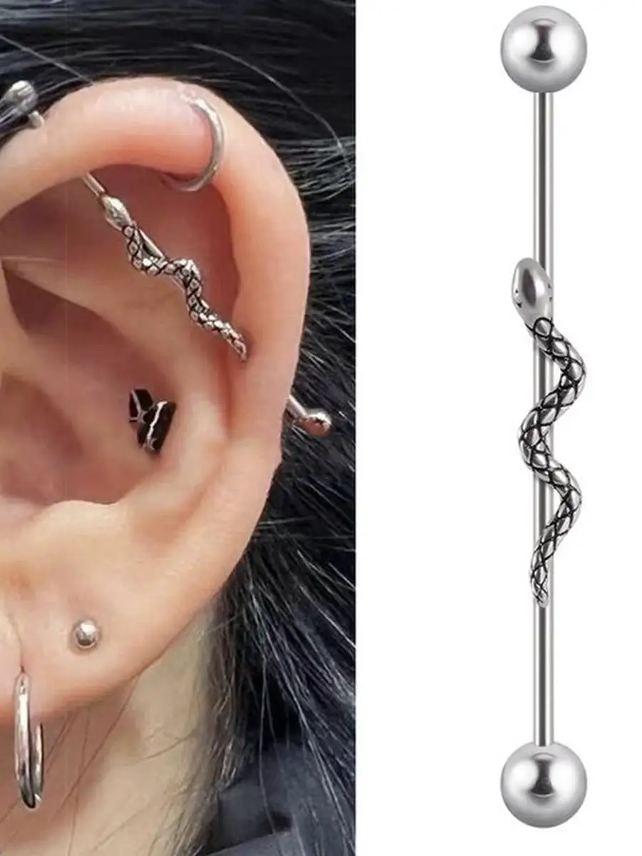 Штанга для пирсинга в ухо со змеей - это стильный и оригинальный аксессуар для тех, кто хочет выделиться из толпы и подчеркнуть свою индивидуальность.